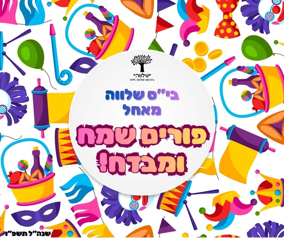 פורים וחופשת פורים ביום ראשון ה1.3.26 נחגוג את חגיגות פורים עם תהלוכה צבעונית, חלוקת משלוחי מנות ופעילויות לפורים. הלימודים יסתיימו בשעה 11:45.ביום שני, תענית אסתר יום לימודים מלא- נחגוג ביום פיגמות. יום שלישי- רביעי ה 3.3-4.3.26 חופשת פורים- לא יתקיימו לימודים. חוזרים ללימודים ב יום חמישי ה 5.3.26 בית ספר שלווה מאחל חג פורים שמח, […]